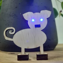 Maak jouw eigen houten diertje met lichtgevende oogjes. Kies een dier dat jij leuk vindt en geef het karakter met jouw eigen ontwerp.